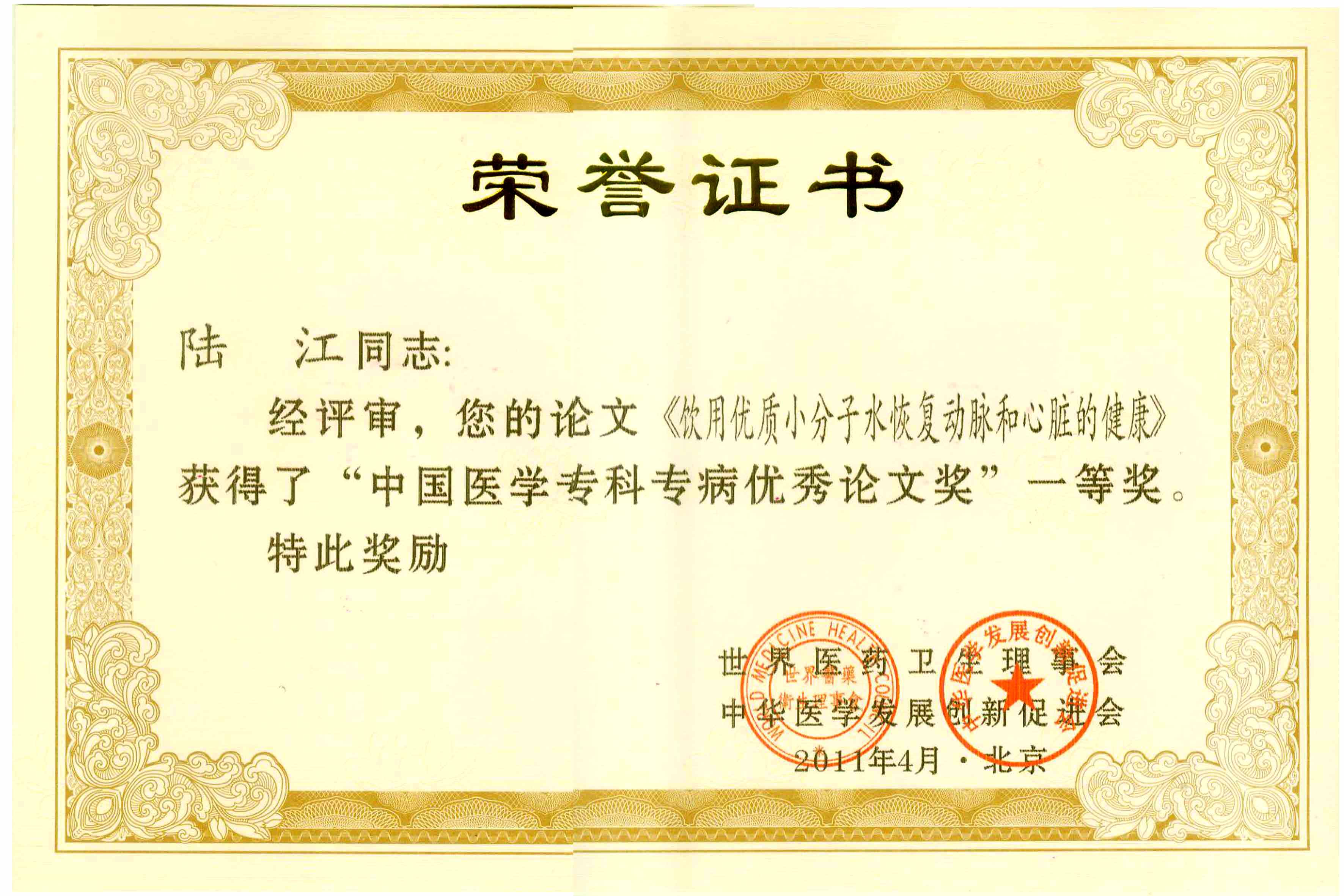 -----我是從事建筑的高工,本來(lái)沒(méi)有資格去攻克醫(yī)學(xué)難題,卻為了自身健康才扣響醫(yī)學(xué)的大門(mén)。由于我1990年患高血壓,因怕中風(fēng)才研究發(fā)明了離子水瓶,我把水處理成微小分子團(tuán)水,飲用后治愈了高血壓。便于1993年底送到三家省級(jí)醫(yī)院做臨床試用4個(gè)月。經(jīng)北京和廣西醫(yī)學(xué)專(zhuān)家鑒定:"降脂降壓效果好"," 能擴(kuò)大心腦動(dòng)脈流量,改善心腦電圖以及微循環(huán)","對(duì)治療心腦動(dòng)脈粥樣硬化、高血壓、高血脂有良好的醫(yī)療保健作用。""產(chǎn)品的技術(shù)性能和療效達(dá)到了同類(lèi)產(chǎn)品的國(guó)內(nèi)領(lǐng)先水平,經(jīng)廣西醫(yī)學(xué)科學(xué)情報(bào)研究所檢索,未見(jiàn)國(guó)外有類(lèi)似報(bào)道。"中國(guó)醫(yī)學(xué)科學(xué)院張正國(guó)教授從美國(guó)國(guó)立醫(yī)學(xué)圖書(shū)館數(shù)據(jù)庫(kù)存Medline檢索英俄文資料,均未見(jiàn)類(lèi)似報(bào)告。2000年上市后,我為了對(duì)消費(fèi)者負(fù)責(zé)而繼續(xù)觀察研究,一直通過(guò)《信譽(yù)卡》和《質(zhì)量跟蹤調(diào)查書(shū)》向患者承諾療效,請(qǐng)用戶(hù)使用6個(gè)月后反饋效果。和脂壓患者飲用2至5個(gè)月內(nèi),消除癥狀,停服藥物,血壓正常;冠心病患者飲用3~5個(gè)月逐漸減輕至消除心絞痛、房顫等癥狀,不再服藥,飲用1年左右心電圖正常,經(jīng)冠脈造影掃描無(wú)明顯狹窄,表明冠心病痊愈。大量患者還反映許多衰弱器官被修復(fù),讓前列腺增生、慢性咽喉炎、慢性氣管炎、支氣管炎、慢性胃炎、腸炎和膽囊炎等不藥而愈;2型糖尿病患者是因?yàn)橐葝u衰弱致病,飲用該水半年至一年,逐漸減藥至停藥,血糖尿糖正常,真正治愈2型糖尿病。中風(fēng)后遺癥患者飲用六七個(gè)月,可逐漸減輕至消除肢體和語(yǔ)言障礙,表明飲用該水能讓壽命很長(zhǎng)的神經(jīng)元細(xì)胞逐漸修復(fù),奇跡般地恢復(fù)肢體和語(yǔ)言功能。飲用后還使胸腺和脾臟兩個(gè)重要的免疫器官被修復(fù)和增強(qiáng),產(chǎn)生免疫細(xì)胞多,提高了免疫力,使人不生病或少生病。自此, 飲用微小分子團(tuán)水創(chuàng)造了攻克冠心病、高(低)血壓和糖尿病三大醫(yī)學(xué)難題的奇跡。人們對(duì)此感到不可思議,但實(shí)踐是檢驗(yàn)真理的唯一標(biāo)準(zhǔn)。