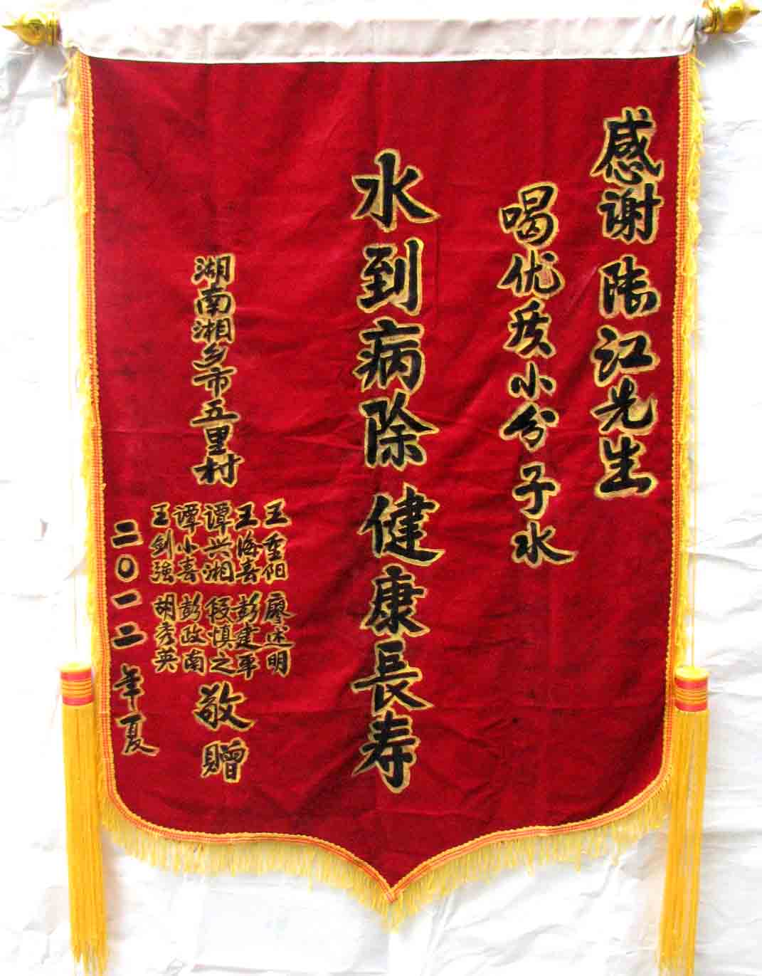 新疆63歲的賀兆生飲用一年,冠心病未愈,他用電話介紹是食堂管理員,問(wèn)他食量多少?說(shuō)吃七八分飽,睡前還吃?xún)纱D蹋?江說(shuō)我在論文和書(shū)中多次批判“吃七八分飽”,關(guān)照患者務(wù)必用“己饑方食”控制主食肉食量,要他把牛奶改在早中餐吃,減少主食肉食量,建議不吃晩餐,晚上只吃一個(gè)蘋(píng)果,再經(jīng)幾個(gè)月補(bǔ)水節(jié)食,治愈了21年的冠心病和肥胖、失眠等病,信中由衷地感激陸 江為再生父母。[13]因?yàn)獒t(yī)生從未過(guò)問(wèn)他的膳食習(xí)慣,只管開(kāi)處方藥或手術(shù),父母也不會(huì)叫他不吃晩飯。